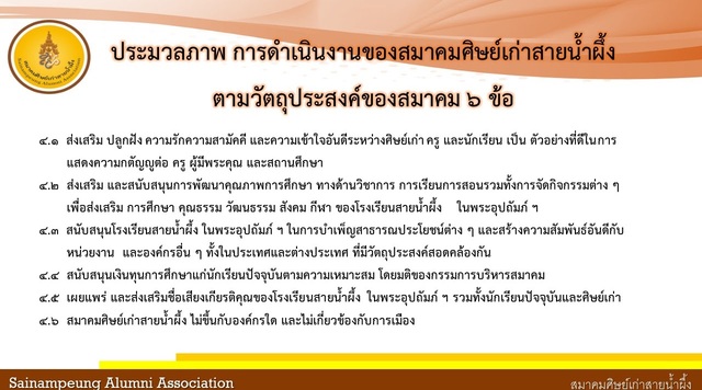 รุปการดำเนินงานคณะกรรมการสมาคมศิษย์เก่าสายน้ำผึ้ง พ.ศ. 2562